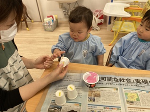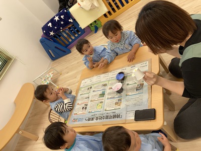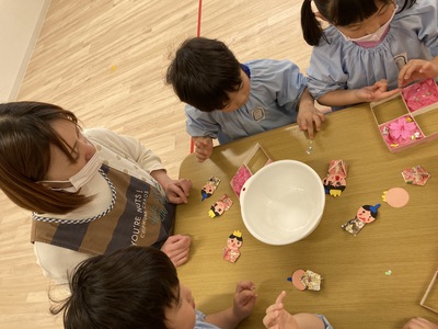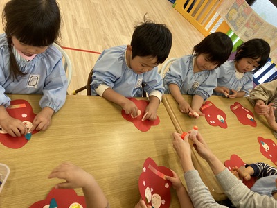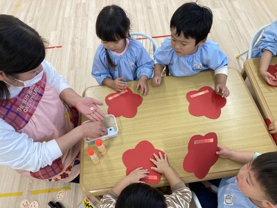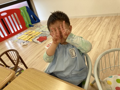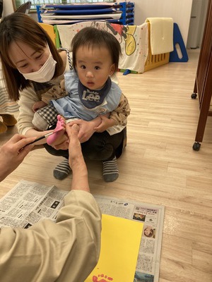 人差し指を出して「いち」にすることに苦戦する子どももいまひたが、感覚を楽しみながらペタペタ〜〜と意欲的に参加していました。