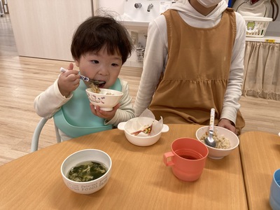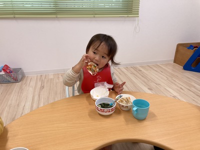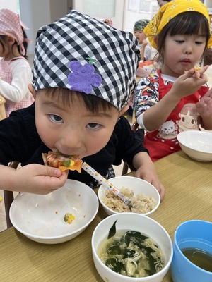 「エプロンまだ脱ぎたくなーい」そのままの格好で食べました(*^-^*)