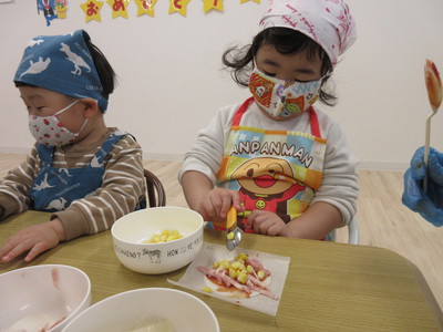 子ども達もとっても嬉しそうにエプロンを着ていました。