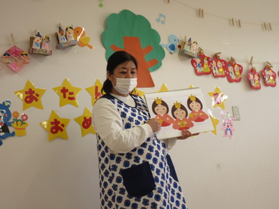 ひな祭り会では、ひなまつりについて習いました(*^-^*)