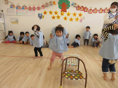ひなまつりの音楽に合わせて椅子の周りをまわります☆
