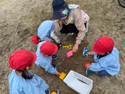 バケツに砂を詰めたり、お料理ごっこをしたり・・・