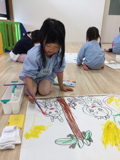何を描くかは子ども達がそれぞれ話しあって決めたようです(*^-^*)