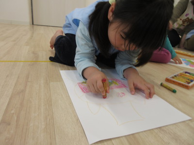 優しくクレヨンをトントンしたり、クレヨンを横に倒して滑らせたり、クレヨンをひねって蝶みたいな模様を描いたり・・・(*^-^*)